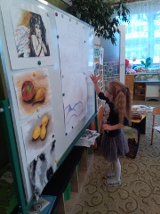 Celem spotkania było rozbudzanie i rozwijanie zainteresowań dzieci sztuką poprzez różne formy plastyczne. Pani Anna bardzo ciekawie opowiedziała o swojej pracy, zainteresowaniach oraz skąd czerpie inspiracje do swoich prac. W podziękowaniu przedszkolaki wręczyły drobne upominki. Bardzo dziękujemy pani Annie za poświęcony czas i umożliwienie naszym przedszkolakom zdobycia nowych doświadczeń plastycznych.