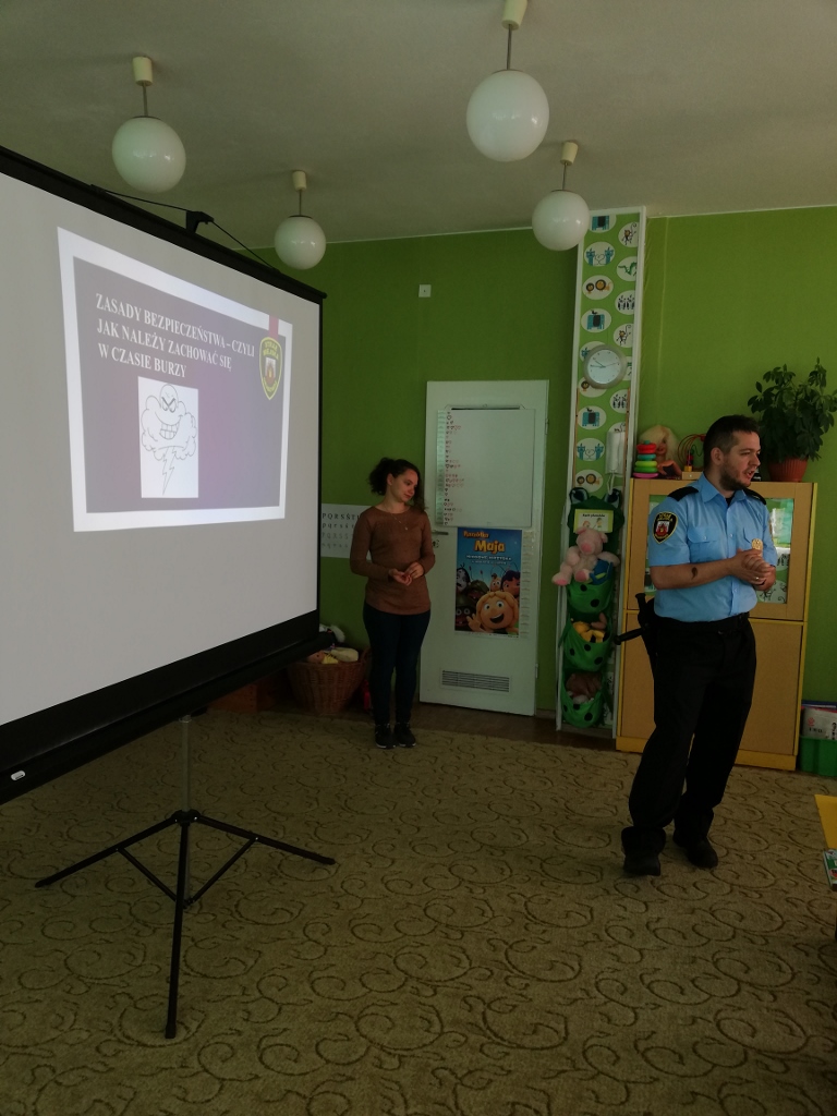 Zajęcia profilaktyczne -Straż Miejska pt. "Jak zachowywać się w czasie burzy?"