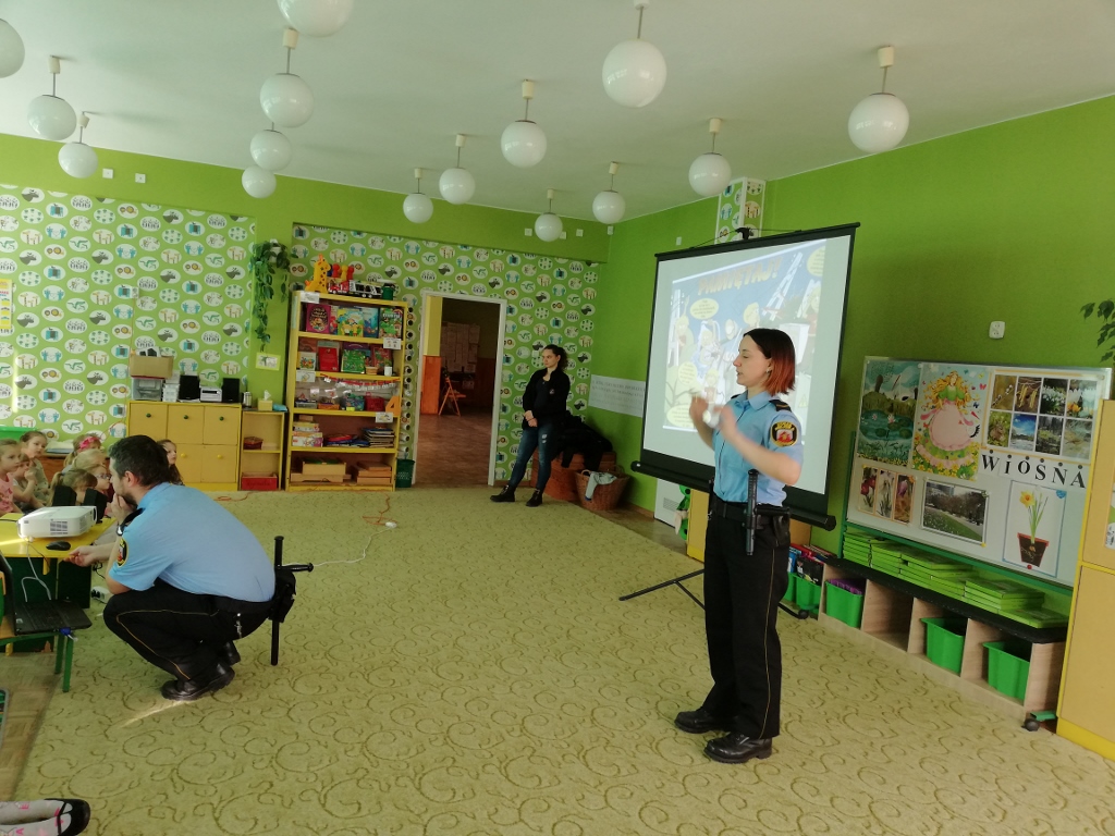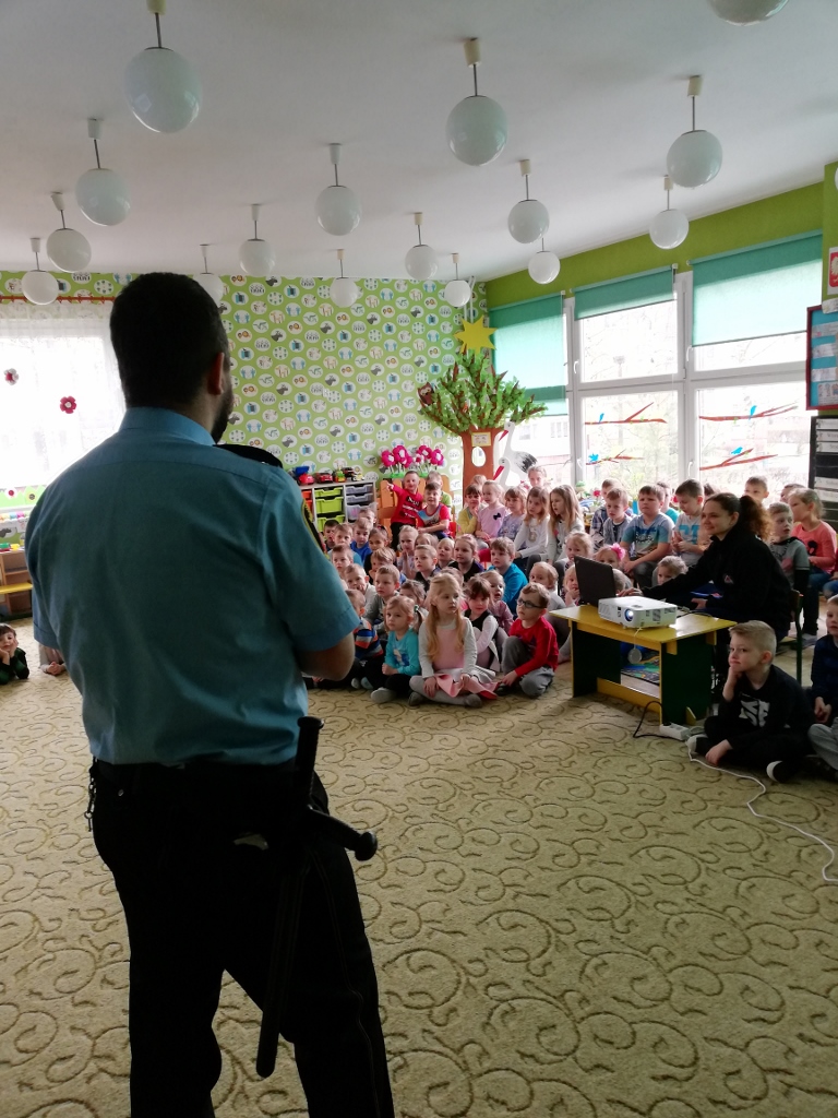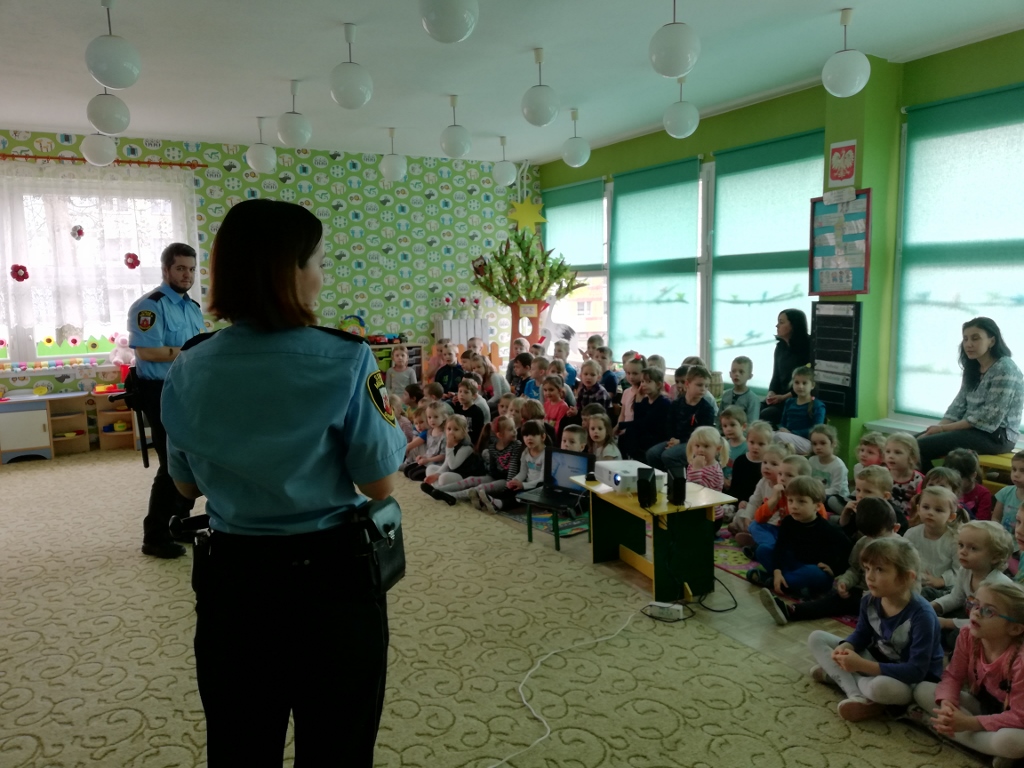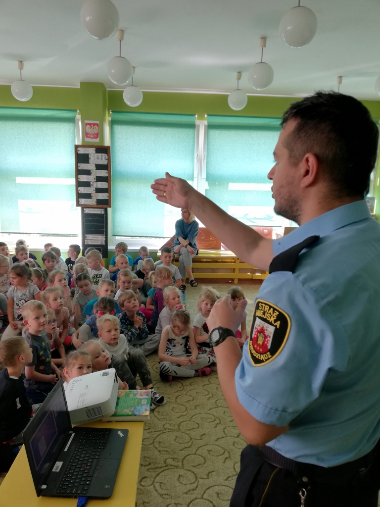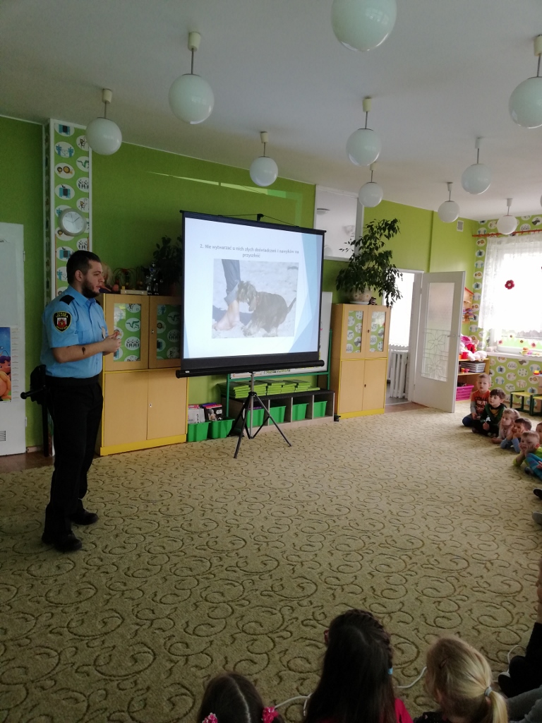 Bardzo dużą popularnością cieszą się spotkania z udziałem Straży Miejskiej, organizowane dla przedszkoli. Dzieci zapoznawane są z podstawowymi zachowaniami psów, sposobami unikania zagrożenia z ich strony, kształtowane są bezpieczne zachowania w kontaktach z psami agresywnymi i w sytuacjach bezpośredniego zagrożenia. Dzieci ćwiczą odpowiednie postawy obronne. Program ten ma na celu zminimalizowanie zagrożenia atakiem ze strony wałęsającego się czy też agresywnego zwierzęcia. Takie spotkania z funkcjonariuszami odbywają się w naszym przedszkolu regularnie.