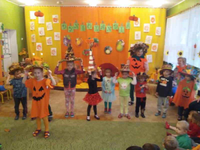 W naszym przedszkolu już po raz kolejny odbyło się święto dyni ale tym razem dynia zaprosiła swoich warzywnych przyjaciół. Przedstawienie w wykonaniu nauczycielek był dla dzieci wielką atrakcją. Zagadki, wspólne zabawy, tańce, śpiewy wzbogaciły wiedzę dzieci o jesiennych warzywach. Bardzo dziękujemy rodzicom za zaangażowanie się w przygotowanie naszego święta.