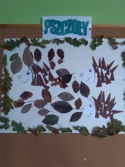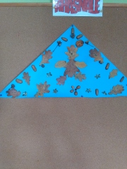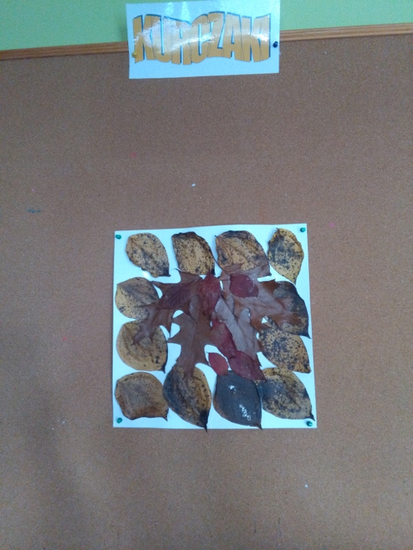 Każda grupa otrzymała za zadanie ozdobienie za pomocą darów jesiennych figur geometrycznych.
