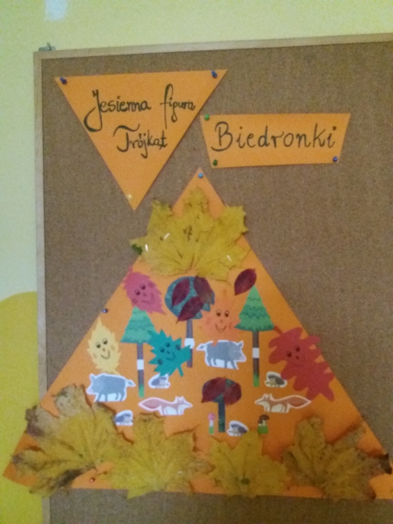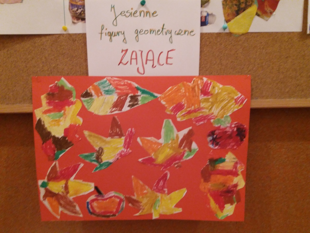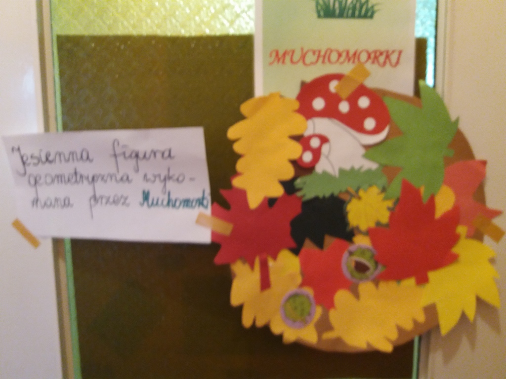 W budynku przy ul. Mastalerza 6, przedszkolacy wraz z paniami wykonali Jesienne Figury. Każda grupa wylosowała jedną figurę geometryczną, którą ozdobiła jesiennymi darami natury i kolorowymi obrazkami.