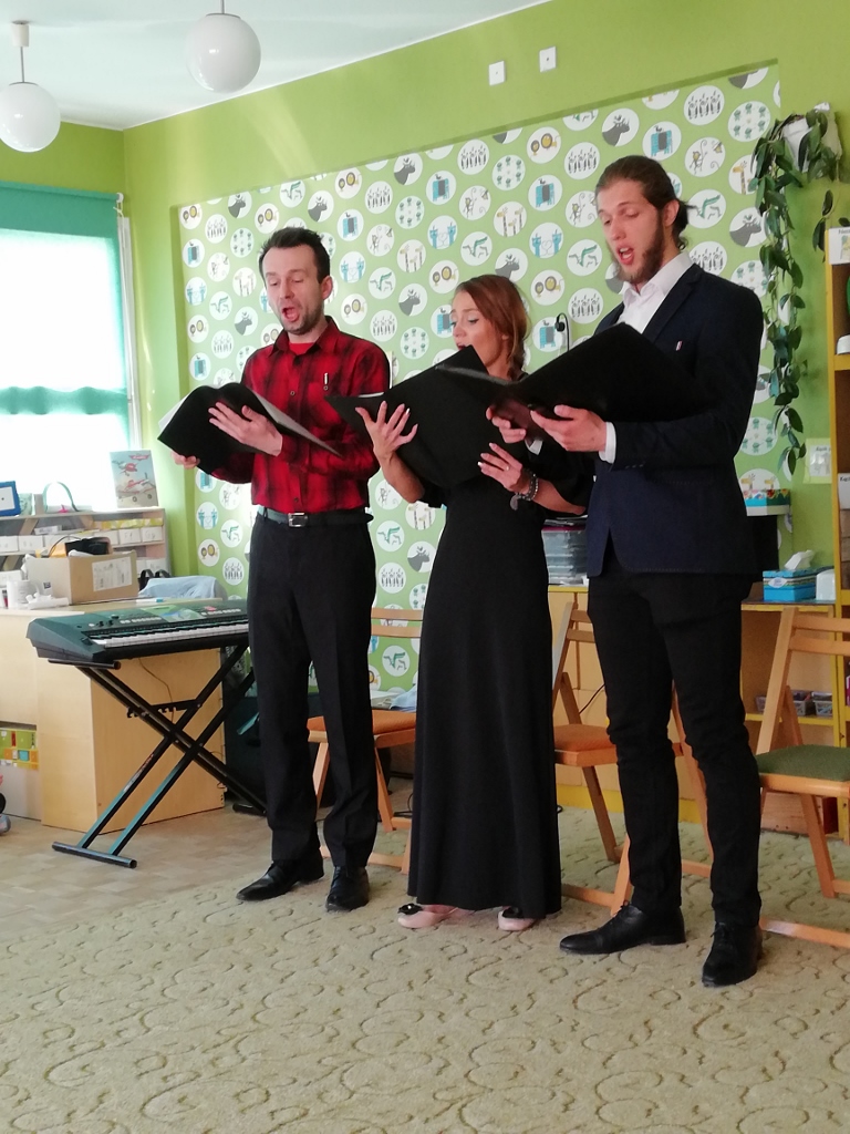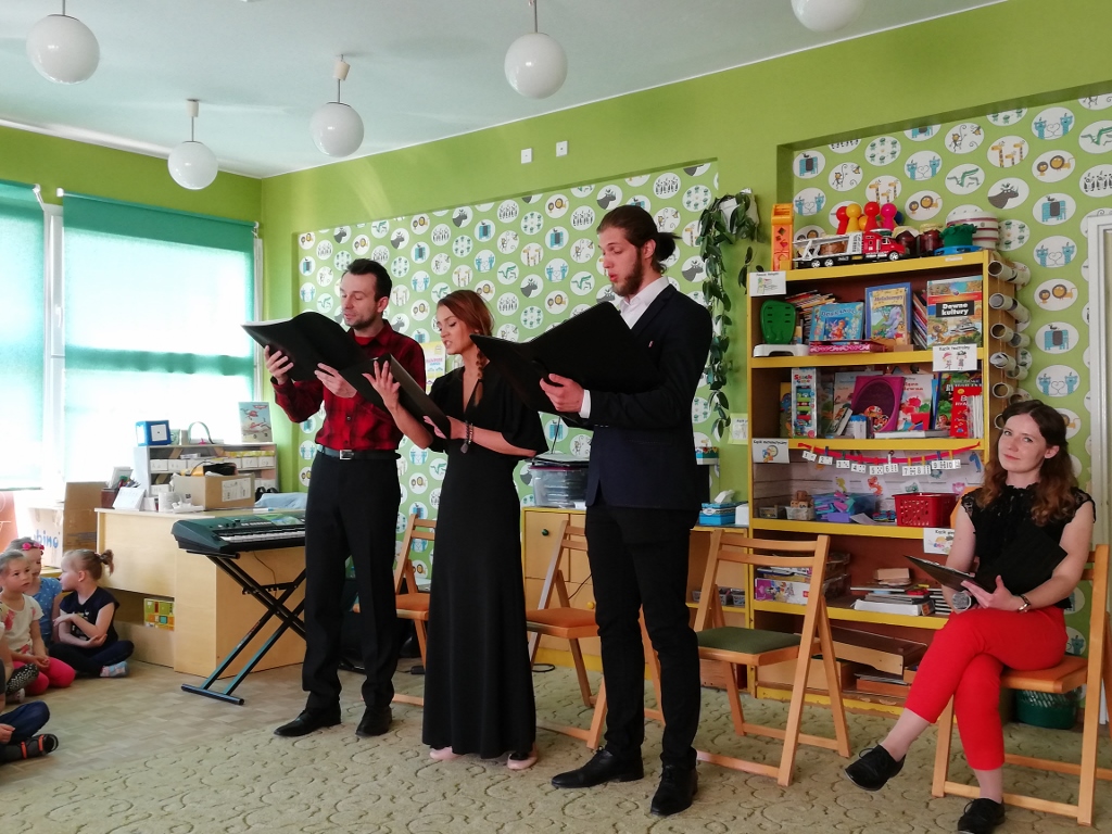 W trakcie spotkania poprzez wesołą zabawę dzieci: uczą się słuchać muzyki, pobudzają wrażliwość na barwę brzmienia piękna ludzkiego głosu, zapoznają się z budową i brzmieniem instrumentów