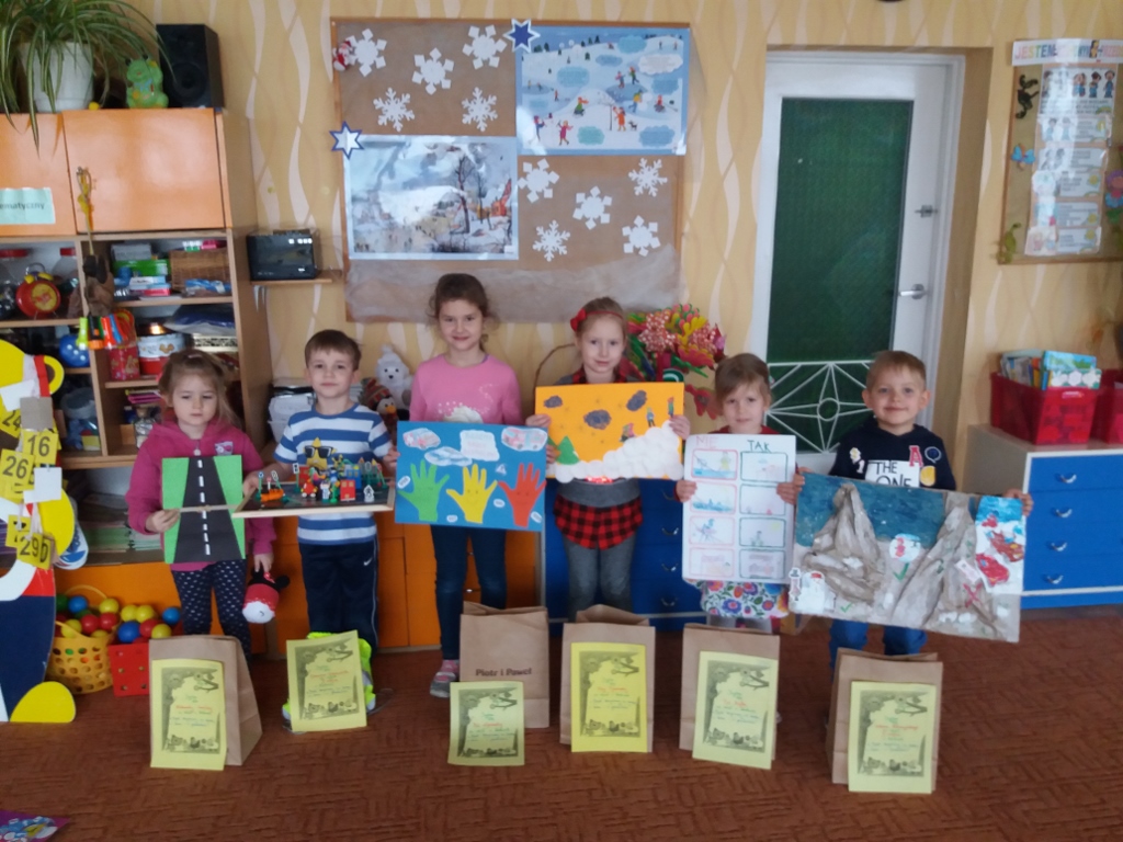 9 lutego rozstrzygnięto konkurs pod hasłem "Bądź bezpieczny w domu, na drodze i w przedszkolu", w którym wzięło udział osmioro przedszkolaków. Wszystkie prace były bardzo ciekawe i oryginalne. Pierwsze miejsce zajął Damian Schoenwald, drugie Oskar Kobuszyński, trzecie Zuzanna Rogalska. Wszystkie dzieci otrzymały nagrody i dyplomy z gratulacjami. Organizatorem konkursu była pani Asia.