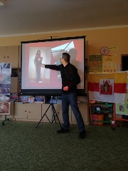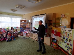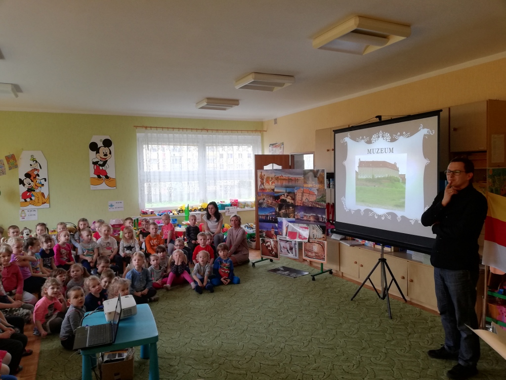 Spotkanie z historykiem, znawcą Grudziądza panem Dawidem Szoenwald. Dzieci poprzez spotkanie utrwaliły sobie wiadomności dotyczące zabytków Grudziądza.