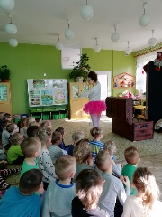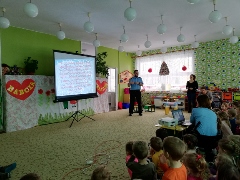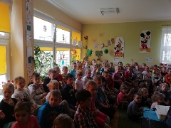 Dzieci z naszego przedszkola wzięły udział w zajęciach pt. "Witajcie w naszej bajce". Miały okazję spotkać się ze swoimi ulubionymi bohaterami, a to za sprawą obchodzonego Międzynarodowego Dnia Postaci z Bajek. Przedszkolaki gimnastykowały się z żywym Kubusiem Puchatkiem. Pozwoliły się zaczarować przez sympatyczną czarownicę. Lis Witalis bawił się z najmłodszymi w "Chodzi lisek koło drogi...", a żółw Franklin tańczył i jeździł pociągiem. Dzieci z wielkim entuzjazmem przyjmowały kolejnych gości-zmieniające się postaci, a znajomość bajek i bohaterów świadczy o tym, że do czytania nie trzeba ich szczególnie namawiać.