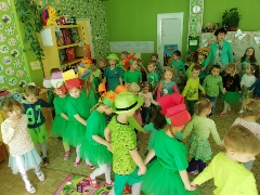20 kwietnia br. w naszym przedszkolu obchodziliśmy Światowy Dzień Ziemi. Jest to największe ekologiczne święto światowe. W tym dniu królował kolor zielony. Dzieci wspólnie dekorowały salę, brały udział w zajęciach plastycznych oraz tanecznych. Były konkursy , pokaz mody ekologicznej i wiele atrakcji. Podczas zajęć i zabaw dzieci dowiedziały się jak dbać o środowisko i otaczającą nas przyrodę. Na koniec każda grupa otrzymała pamiątkowy dyplom „Przyjaciela Przyrody” oraz posadziła w ogrodzie własny krzew, którym będzie się zajmować.