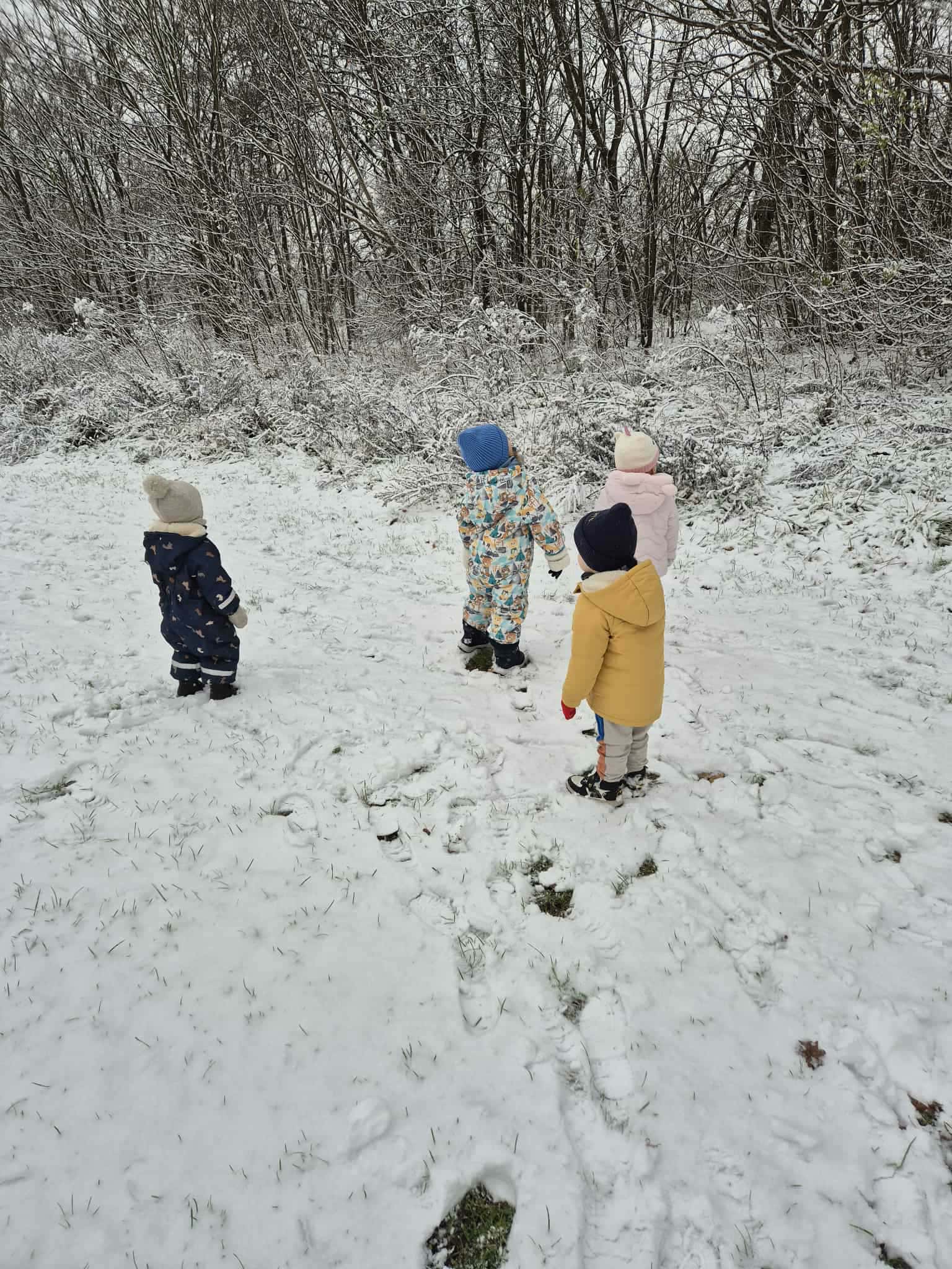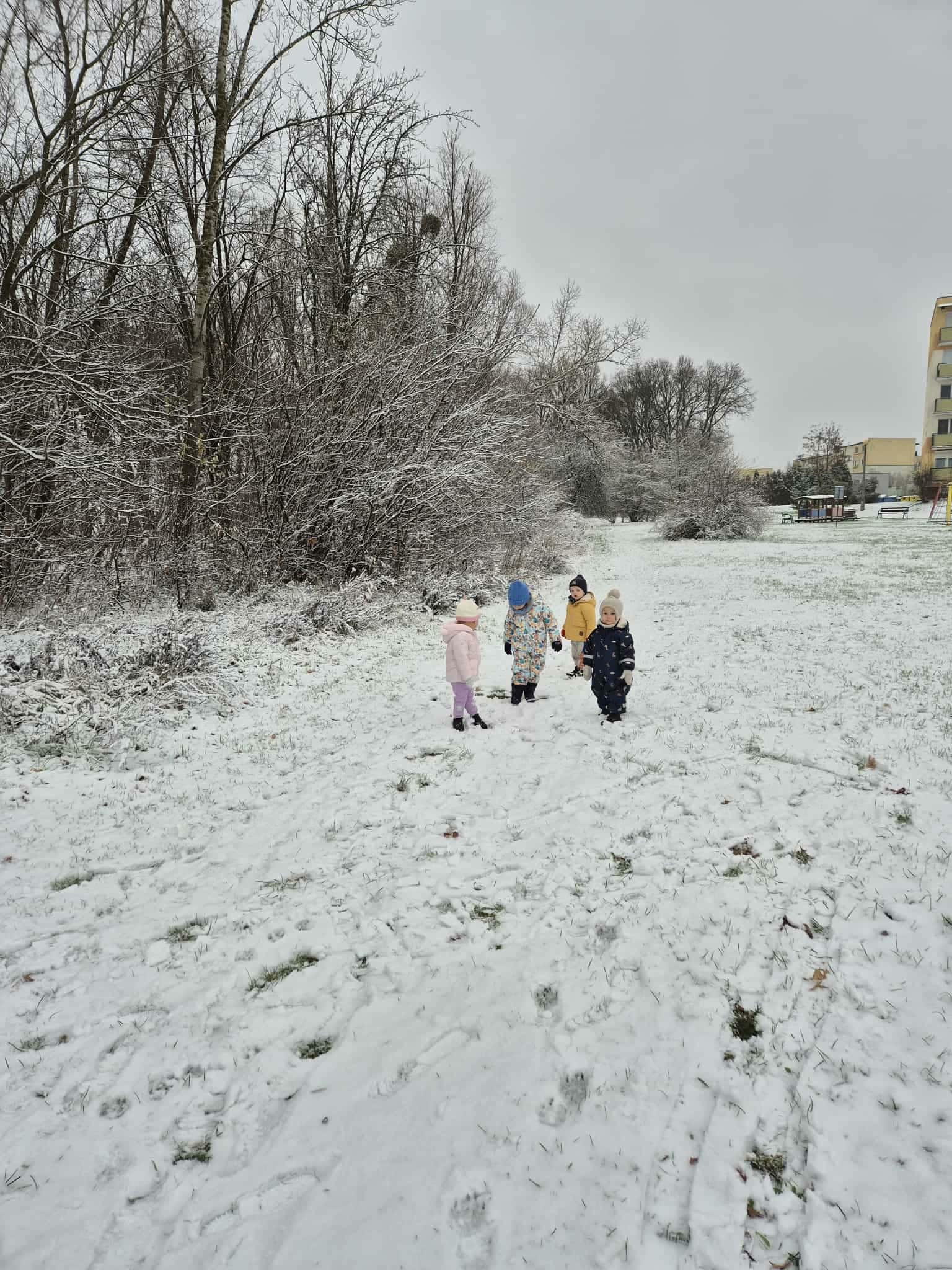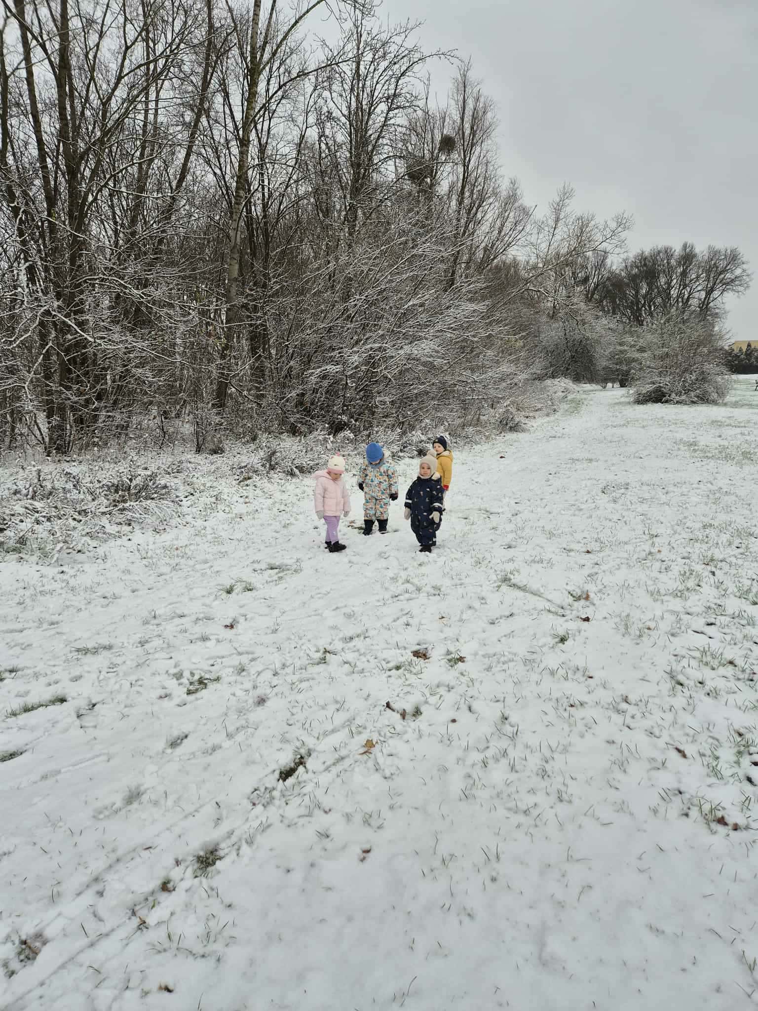 Pada śnieg, pada śnieg, wszędzie jest już biało. Cały dzień, cały dzień, dzisiaj tak padało. Hu, hu, ha, hu, hu, ha, Biała Zima nie jest zła. Hej, saneczki mkną z góreczki, a na sankach dzieci.
